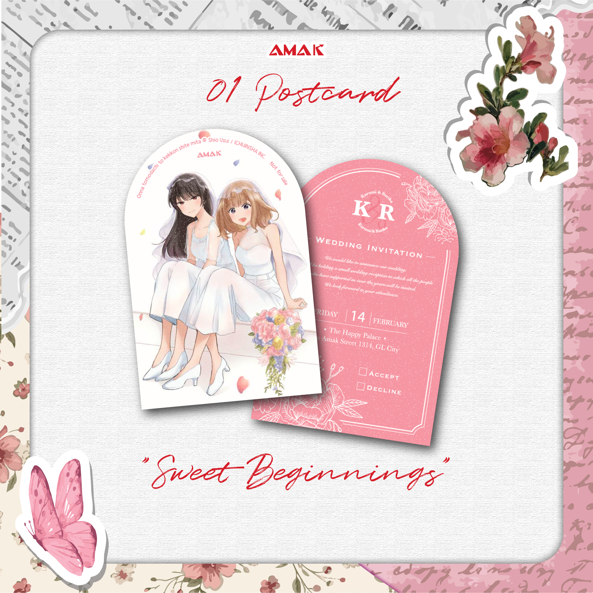Tặng kèm Thiệp cưới "Our Wedding" nhũ cát, Postcard nhũ "Sweet Beginnings". 500 đơn hàng đầu tiên tặng thêm set 3 Card bo góc "Moments in Love"